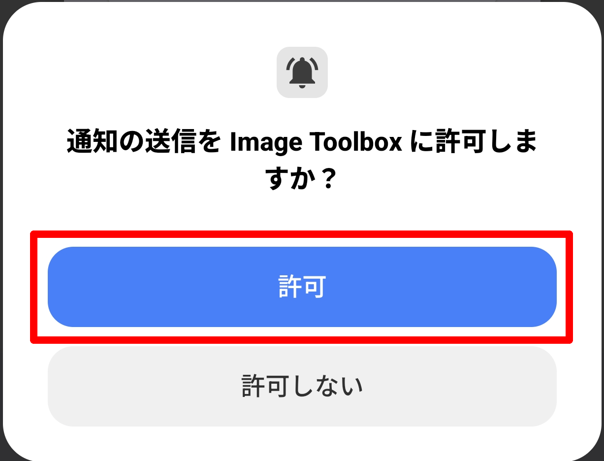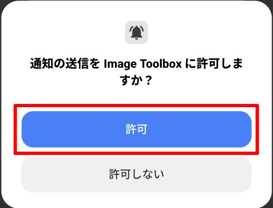初回起動時には「通知の送信を Image Toolbox に許可しますか?」というポップアップが表示されるので、問題がなければ「許可」ボタンをタップします。