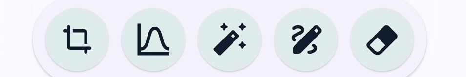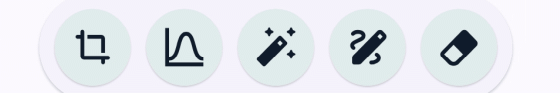 さらにその下に配置された5つのアイコンをタップすると左から「切り抜き」「トーンカーブ」「フィルター」「描画」「背景を消去」画面に移動します。