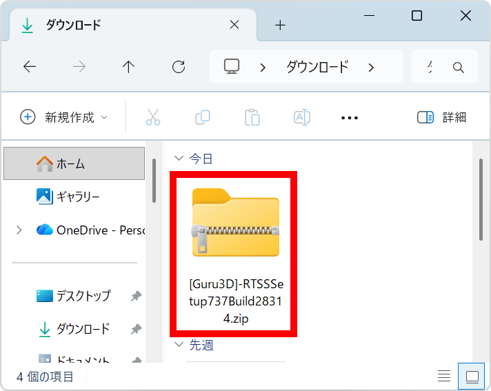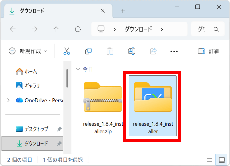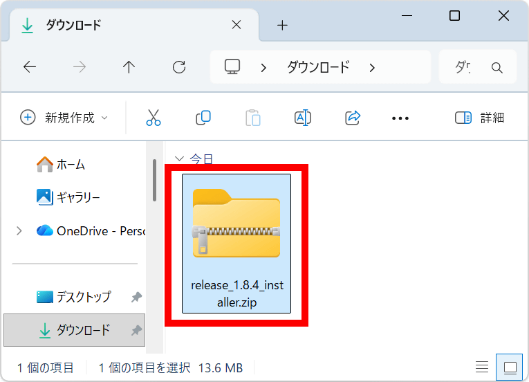 インストーラーはZIP形式で配布されているので、ダウンロード完了後にWindows標準機能や対応アーカイバーを使って展開します。