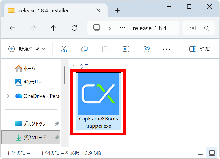 ダウンロードページではインストール版とポータブル版が配布されています。今回はインストール版を使いたいので「CAPFRAMEX 1.8.4 Installer」をクリックしてインストーラーをダウンロードしました。