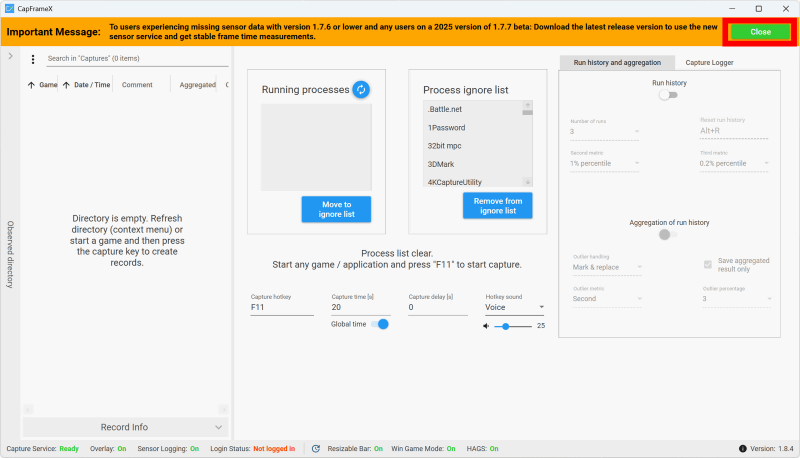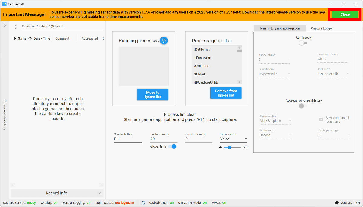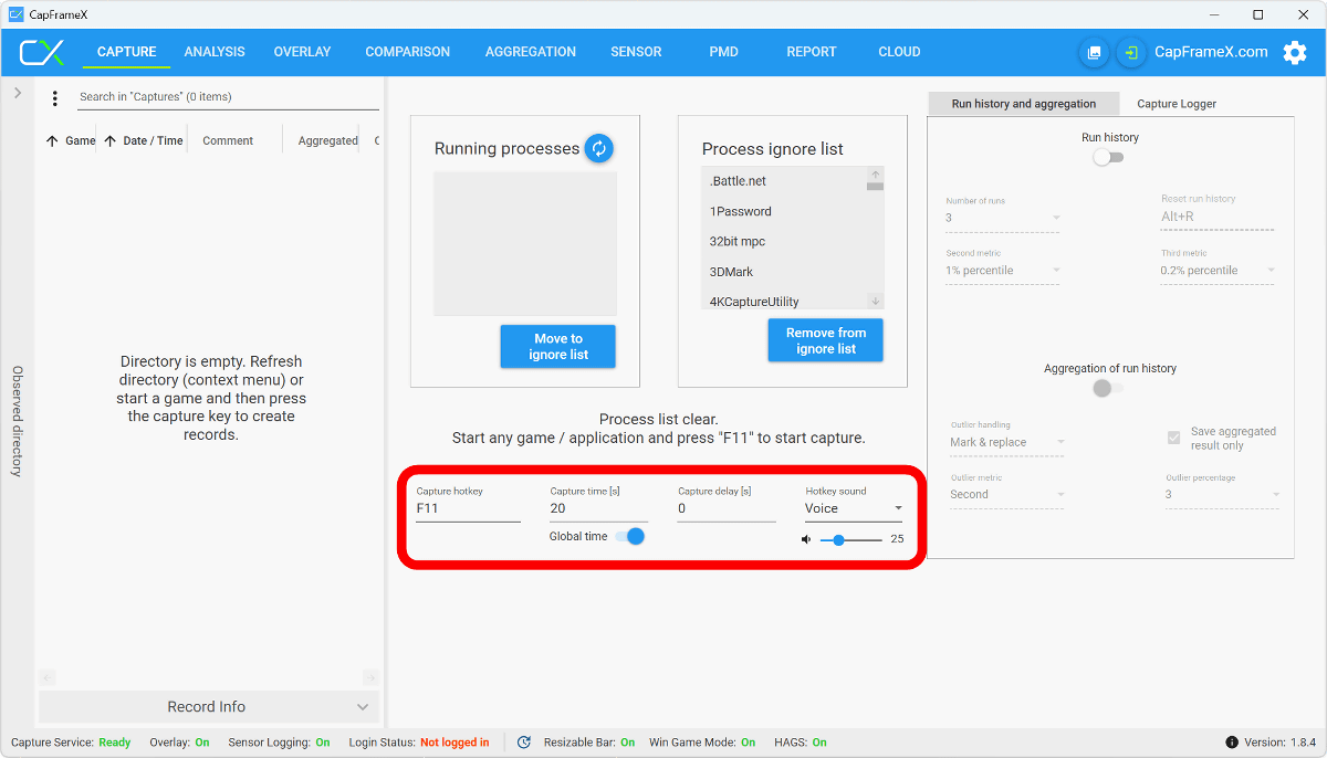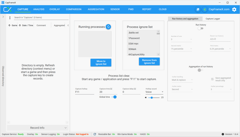 これでCapFrameXを使う準備が整いました。