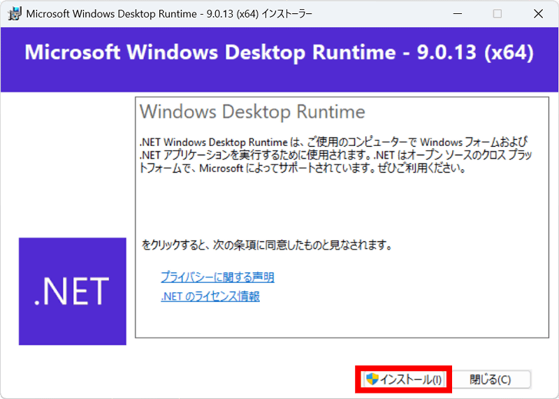 .NET Framework 9.0のランタイムをインストールするために、以下のリンクをクリックしてMicrosoftの公式ページにアクセスします。