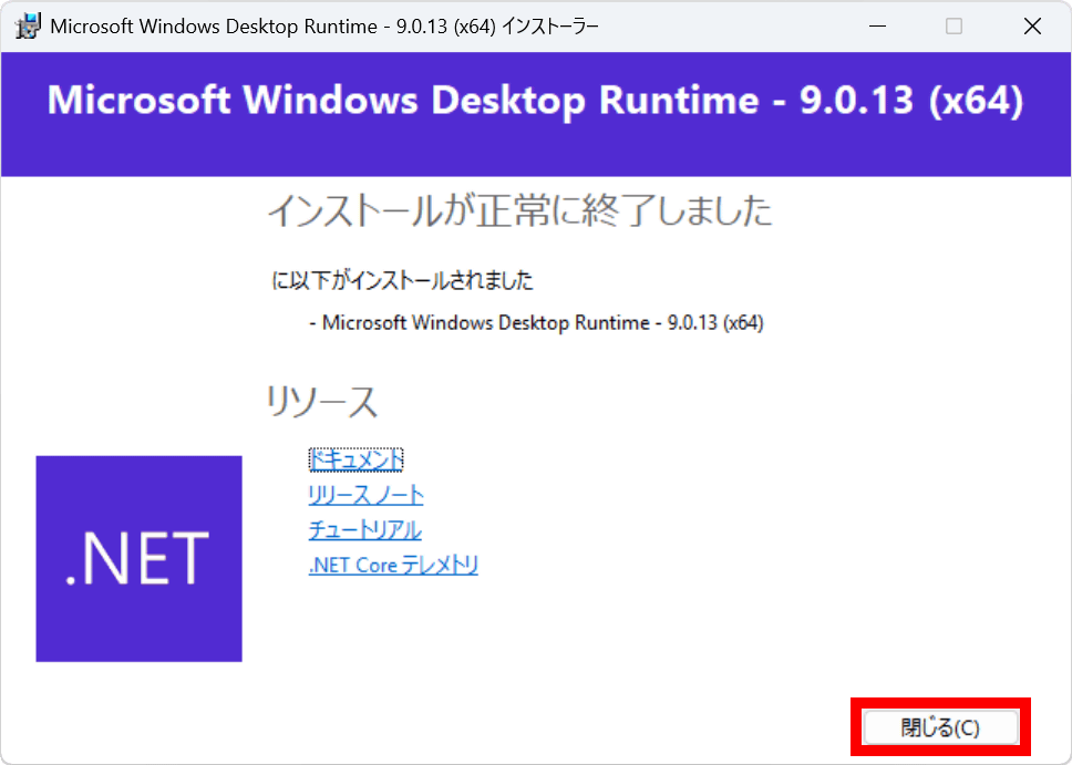 「閉じる」をクリック。