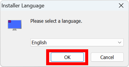 まず言語選択画面が表示されます。日本語には対応していないのでEnglishのまま「OK」をクリック。