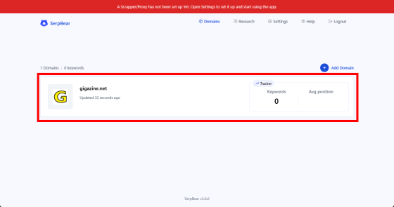 スクレイパーの設定が完了したら登録したドメイン名をクリックします。
