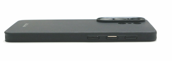 Galaxy S26 Ultra本体に装着して手に取ってみると、背面側のテクスチャはEdge Caseと同じですが、側面がTPUになったことでEdge Caseと比べて横幅のボリュームががわずかに増した印象。