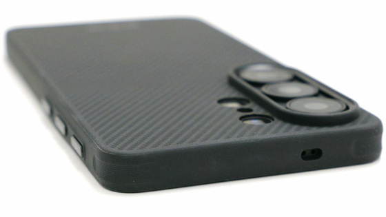 ただし、全面がカーボン調だったEdge Caseに対し、Cairn Caseは側面がTPU製で、ゴムのような質感になっています。
