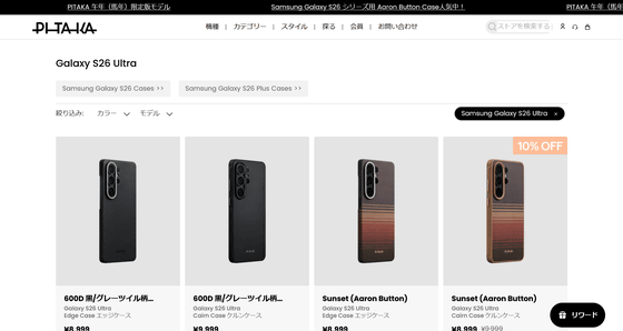 スマートデバイスアクセサリーやワイヤレス充電器のメーカーであるPITAKAが「Samsung Galaxy S26対応スマートフォンケース」を2026年2月26日に発売しました。このSamsung Galaxy S26対応スマートフォンケースには、航空機の機体や防護装備に使用される600Dアラミド繊維を採用して完全フラット筐体への最適設計がなされた「Edge Case(薄型)」と、1500Dアラミド繊維とTPU(熱可塑性ポリウレタン)で米軍規格の落下試験をクリアするほどの「Cairn Case(全面保護)」の2種類があり、どちらも次世代NFCショートカットボタンである「Aaron Button」を搭載しています。このAaron Buttonを活用することで、さまざまなタスクをケースのボタンに設定でき、日常生活の効率化が図れるとのことで実際に使ってみました。