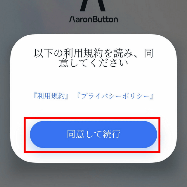利用規約が表示されるので、目を通したら「同意して続行」をタップ。