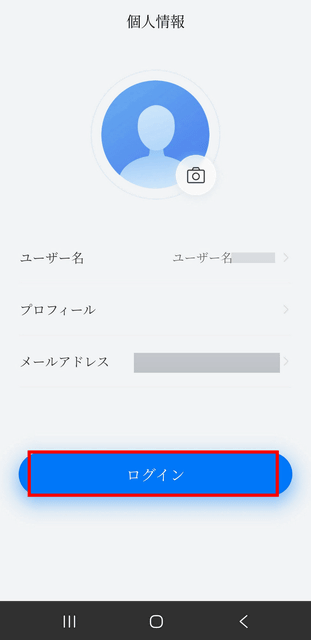 自分のユーザー名とメールアドレスが表示されるので、「ログイン」をタップします。