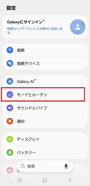 さらに、Aaron Buttonの連携を手動で設定することで、Aaron Buttonをトリガーにしたアクションを自作することも可能。Galaxy S26 Ultraの設定から「モードとルーチン」を選択。