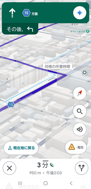 すると、割り当てたAaron Buttonを押すだけで、現在地からGoogle Mapに登録している自宅までの道筋のナビゲーションが自動で開始されます。「外出先から帰る時にアプリを起動して自宅を選択してナビゲーションを設定する」という一連の動作がボタン一発で実行できるので、Google Mapとスマートフォンをカーナビ代わりに使っている時にめちゃくちゃ便利。
