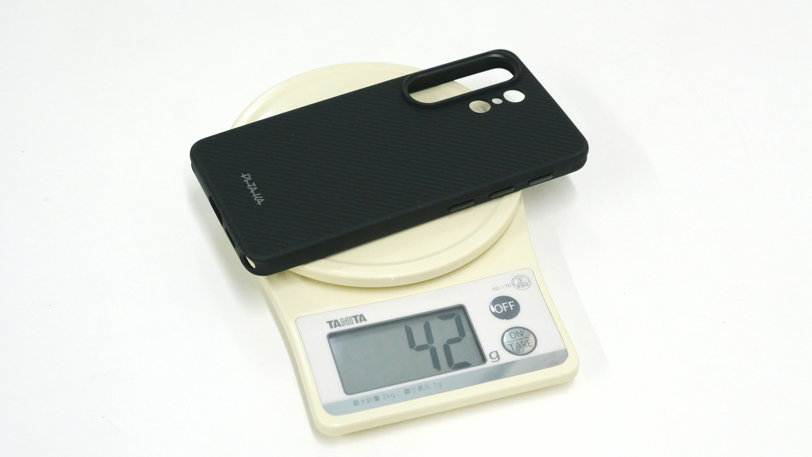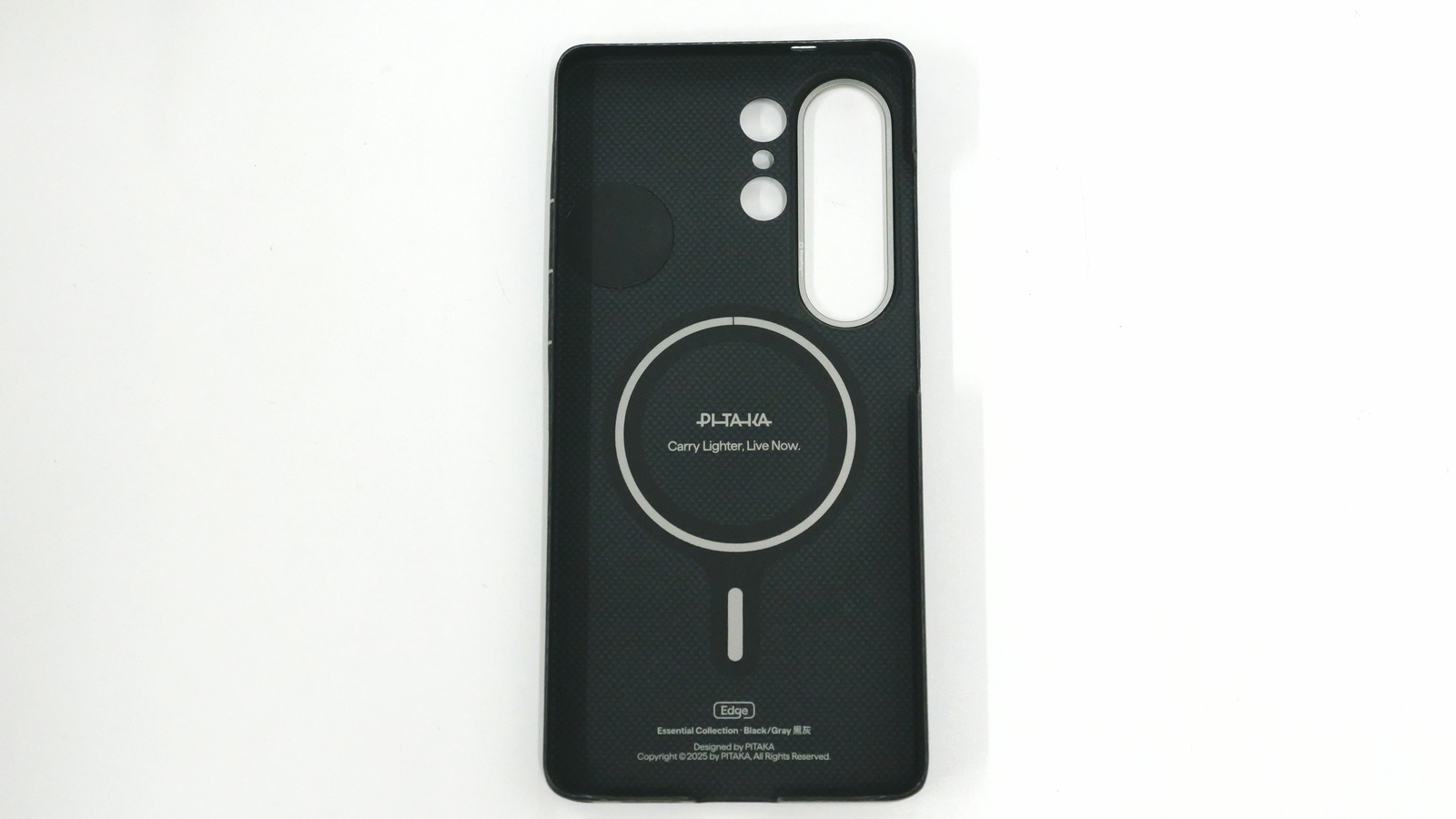 Edge Caseはカーボン調の高級感ある質感が特徴。PITAKA独自の「浮織技術」により表面に立体的なテクスチャーを表現し、「文字織り技術」で繊細なパターンが織り込まれているとのこと。耐久性に優れた500Dアラミド繊維を使用しており、鋼鉄の5倍の強度を持ちながらわずか0.95mmの厚さを実現しています。