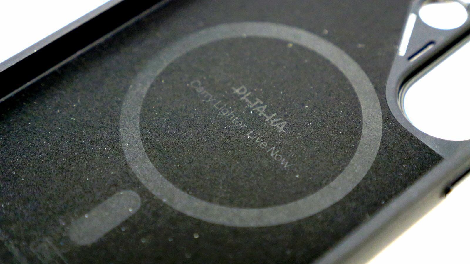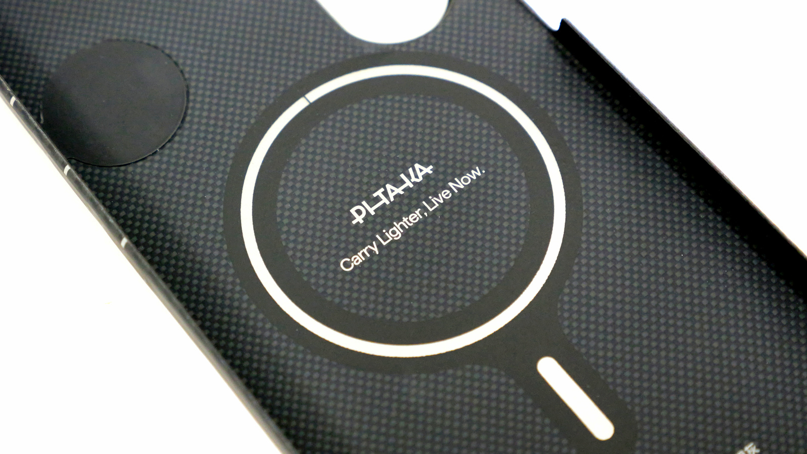 Cairn Case本体はEdge Caseと同じく表面がカーボン調の質感となっているのが特徴。ただし、PIKATAのロゴはCairn Caseだと銀色で印字されています。