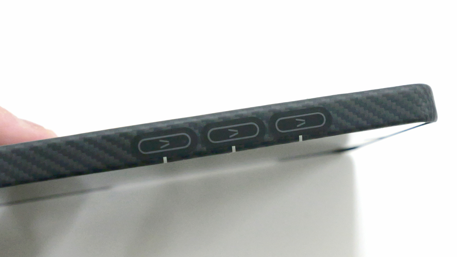 ただし、全面がカーボン調だったEdge Caseに対し、Cairn Caseは側面がTPU製で、ゴムのような質感になっています。