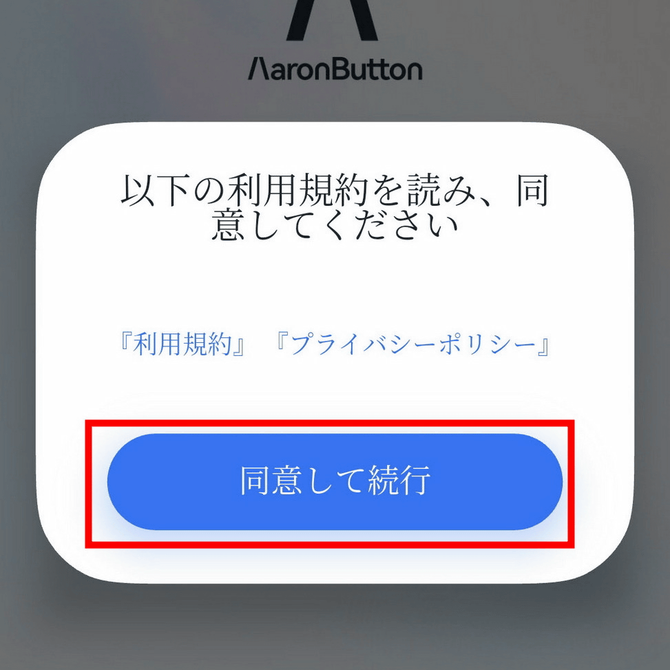 利用規約が表示されるので、目を通したら「同意して続行」をタップ。