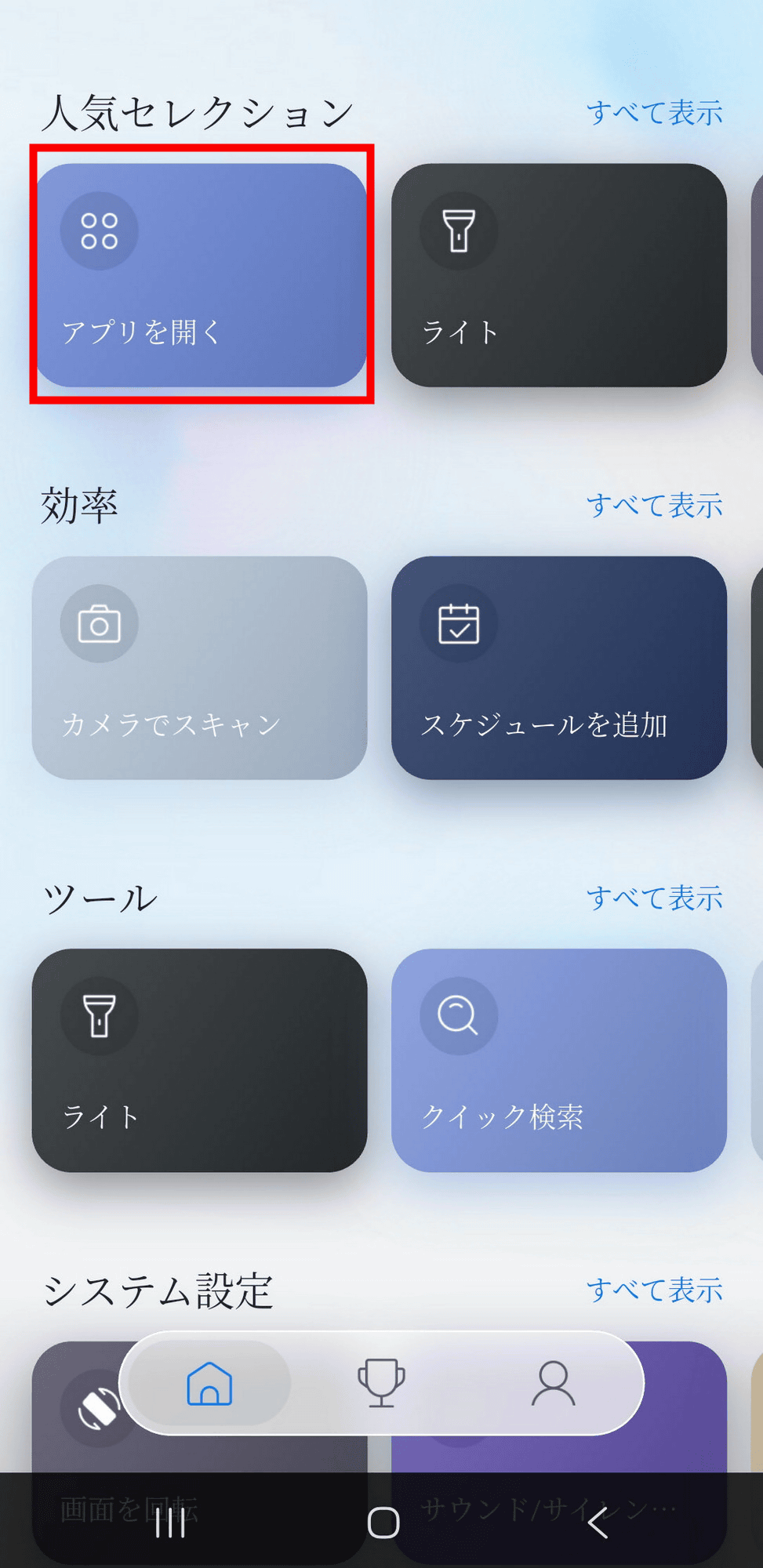 さまざまなアクションが表示されています。今回は「アプリを開く」をタップしました。