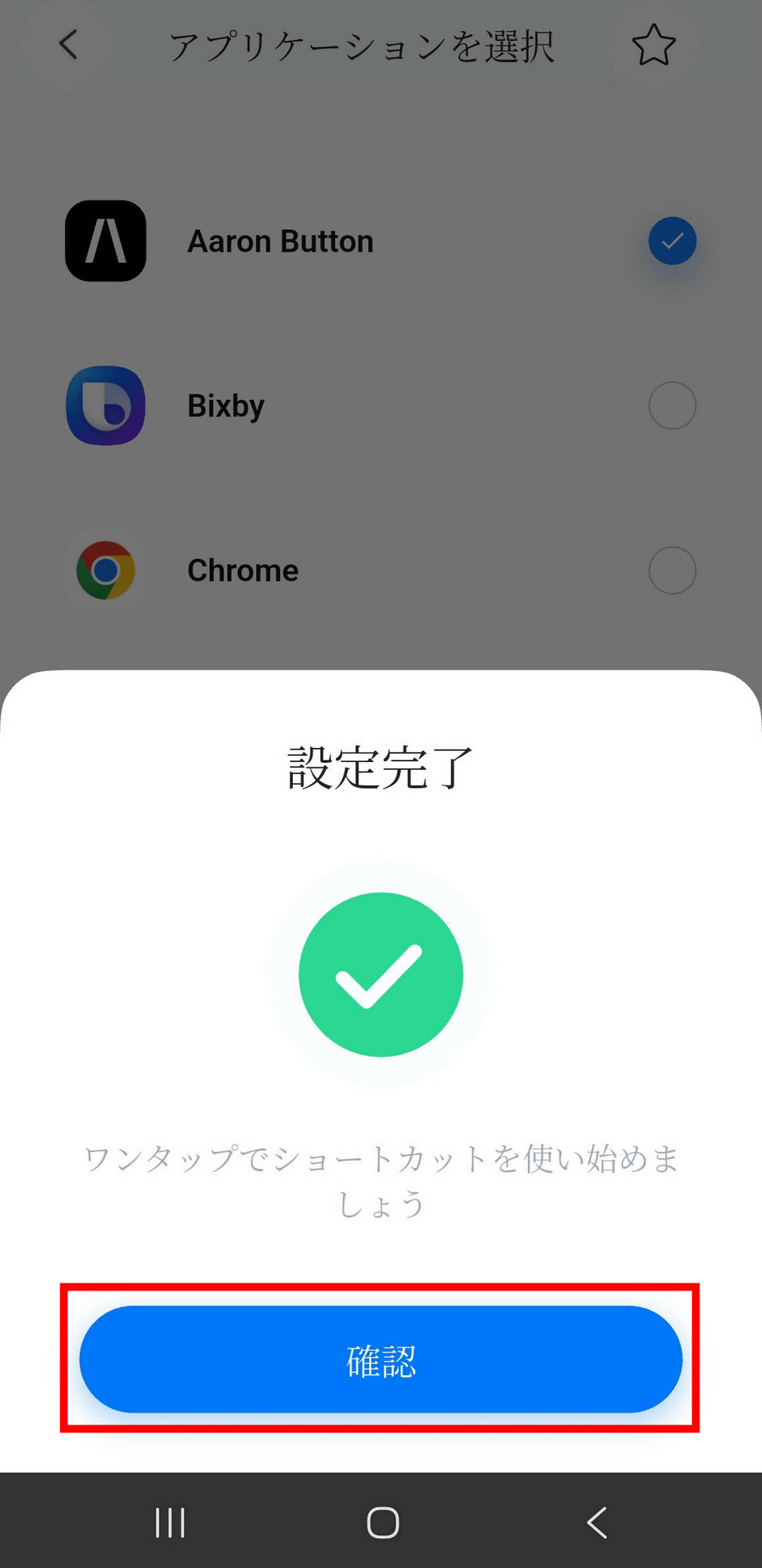 「Aaron Buttonを設定」と出るので、設定したいAaron Buttonを長押しします。