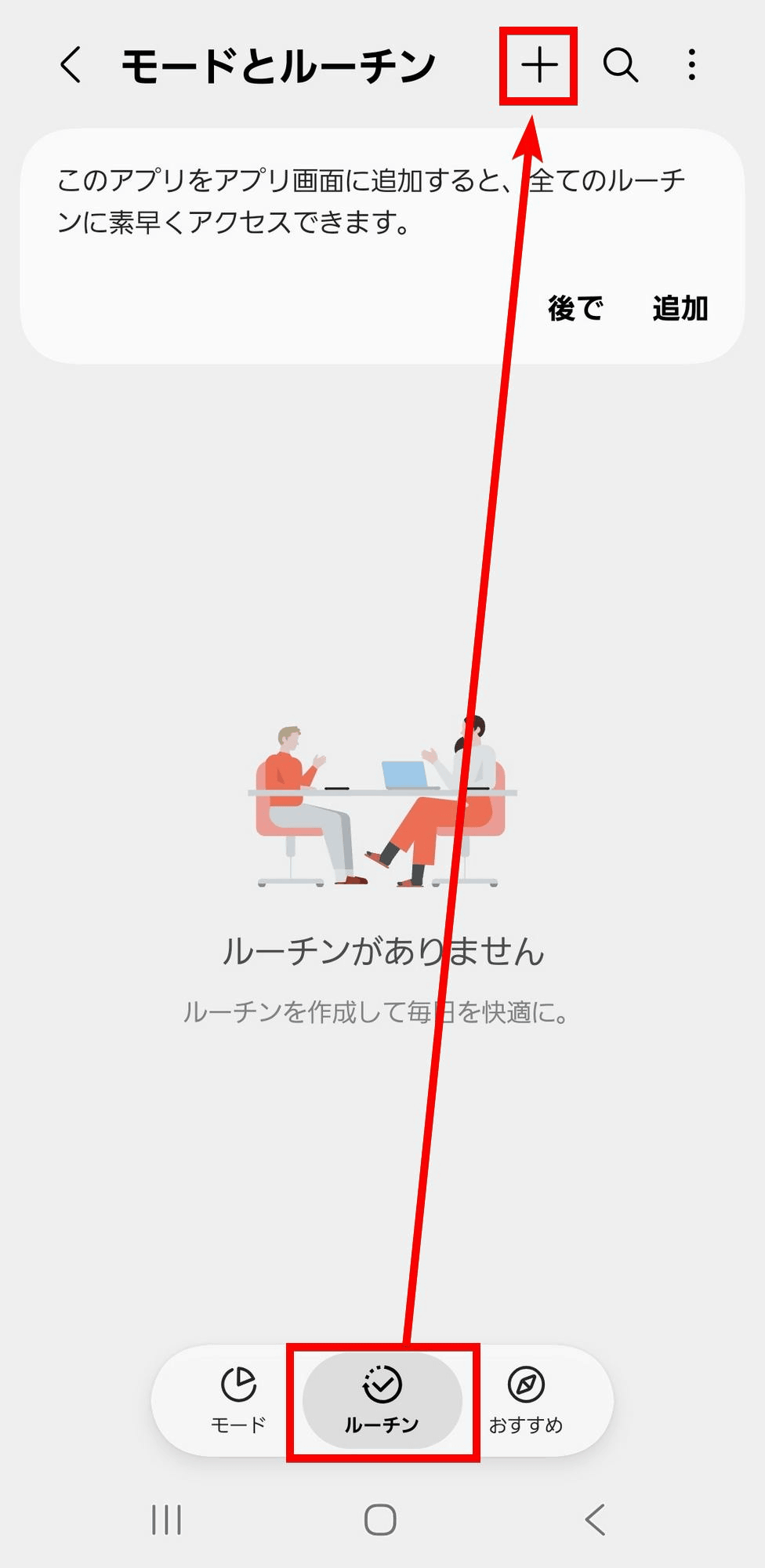 「ルーチン」を選択し、右上の「+」アイコンをタップします。