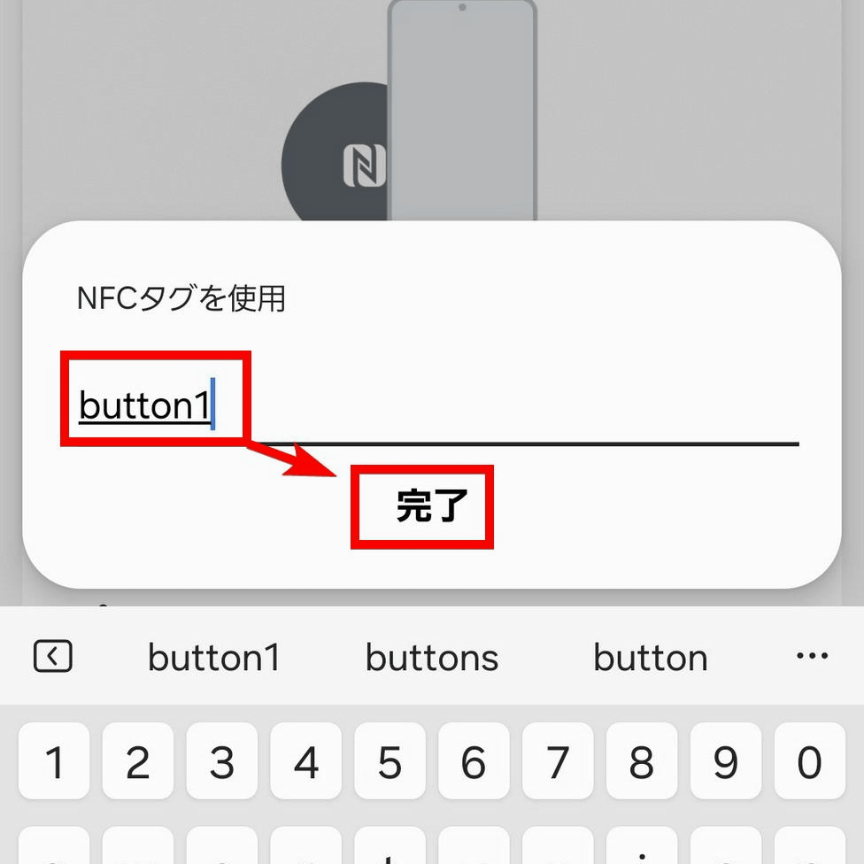 認識に成功すると名前を求められるので、今回は「button1」と命名し、「完了」をタップします。