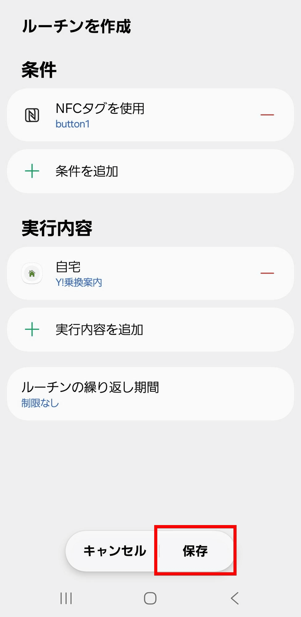 これで、Aaron Buttonを押すだけで、帰りの電車とその時間を自動的に示してくれるルーチンを組むことができるようになりました。外出時にうっかり遅くまで時間を過ごしてしまって「ここから帰るための終電はいつだろう?」と調べることがありますが、Aaron Buttonを押すだけで帰りルートと電車の時間が一発で分かるのはめちゃくちゃ便利。あらかじめ宿泊地や経由地をアプリに登録しておけば、未知の場所にいるからといって慌てる必要がなくなります。